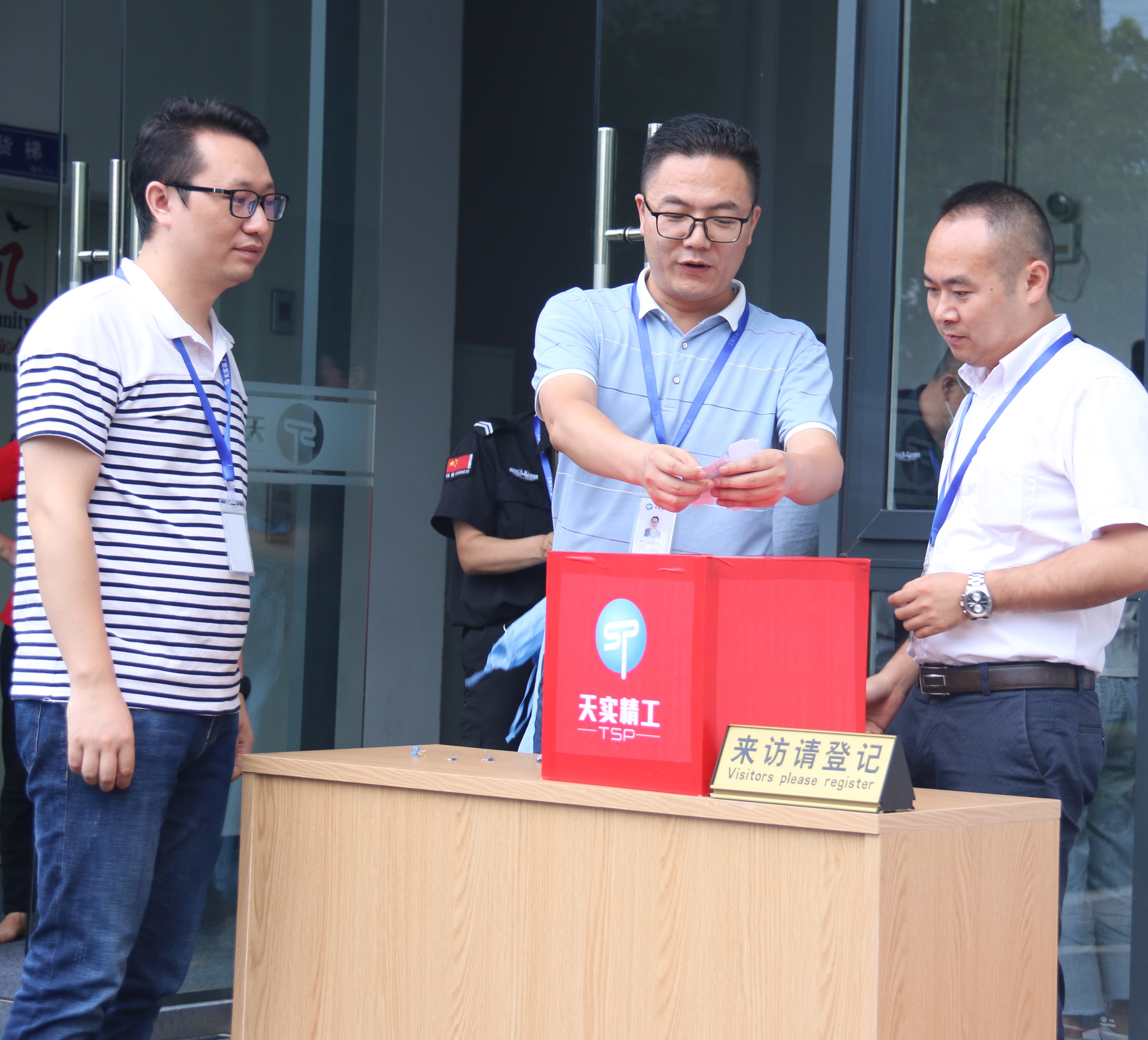 (姚總、齊總、楊經理親自把抽獎名牌放入抽獎箱 )