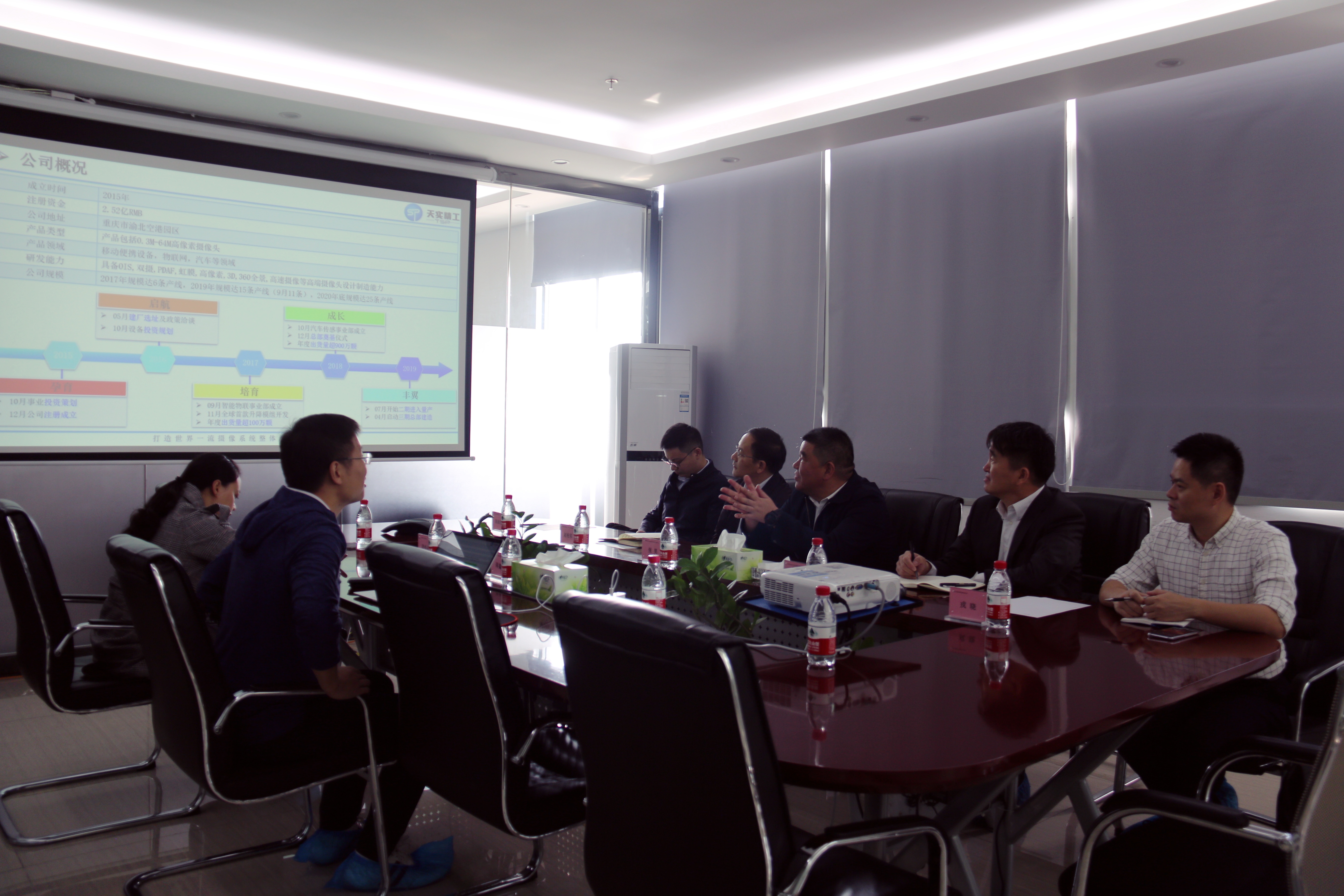 10月18日上午,江蘇省宿遷市市委常委、經開區黨工委書記張昊一行到重慶市天實精工科技有限公司考察參觀。天實精工副總經理、董事會秘書蔣鑫宇熱情接待了相關領導,并召開座談交流會議。