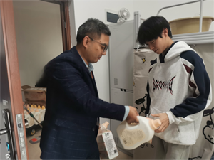 在走訪宿舍之前為大家采購了紙巾、洗衣液等生活用品